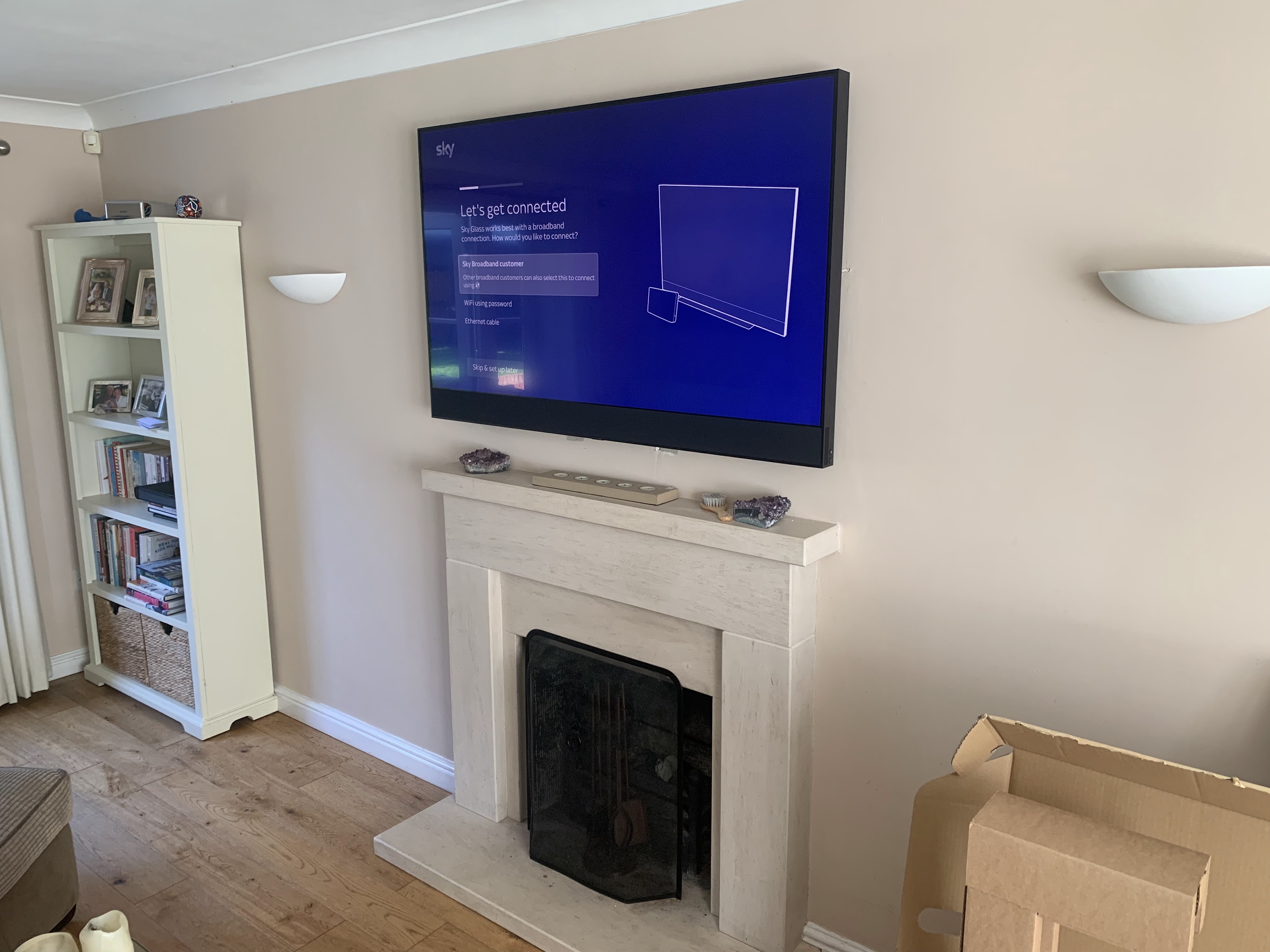 Sky Glass above fireplace with hidden cables